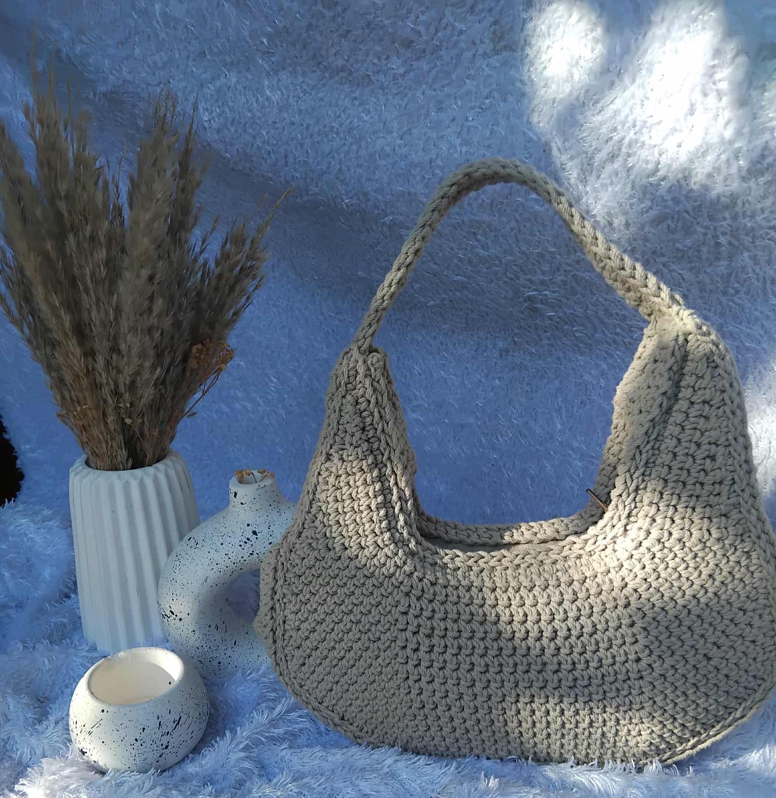 شنطة من خيوط المكرمية القطن المتينة والقادرة علي الاستمرار وبقوة