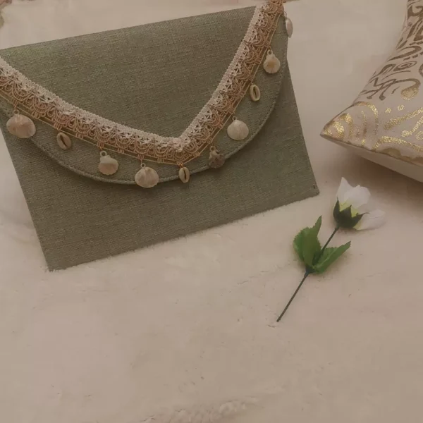 كلاتش مبطنه ستان بسوسته عليها شريط قواقع